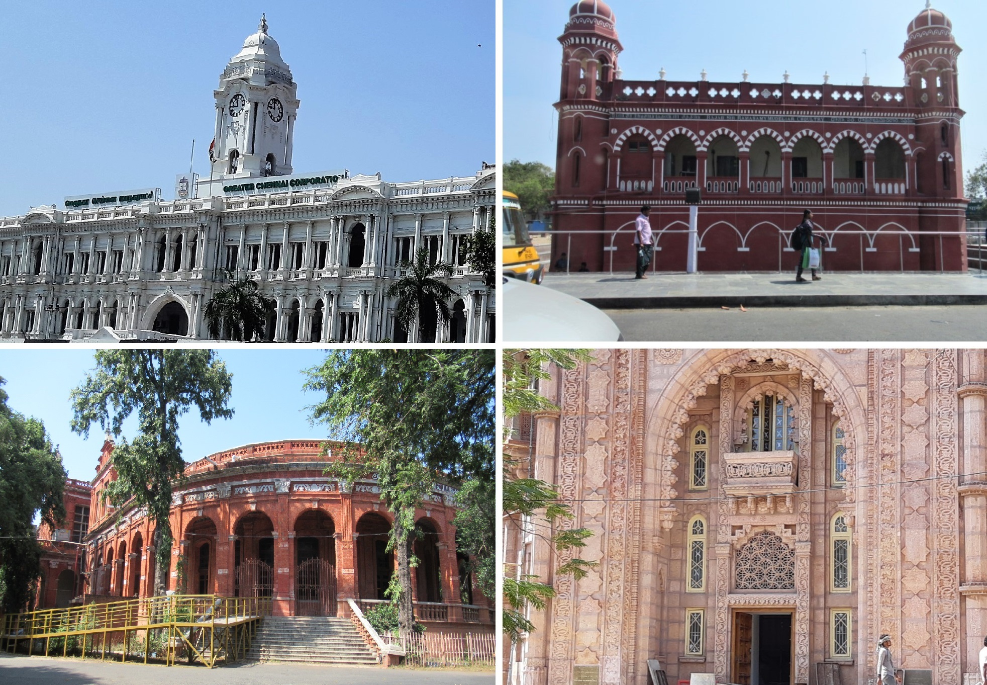 | Left to right: Ripon Bldg, Ramaswami Mudaliar Bldg, Government Museum, National Art Gallery |